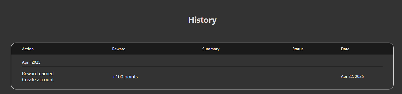3. At the bottom of the page, you will find Points Earned Record in History.